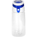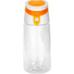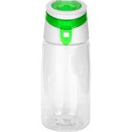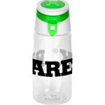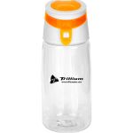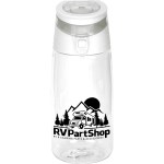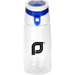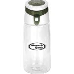 Stay hydrated on the go with our 18 oz. refillable water bottle, crafted from recycled PET material for an eco-friendly choice. The convenient screw-on/flip top lid ensures no spills, while the easy-carry pop-up handle makes it a breeze to take with you wherever you go. Rest assured, this bottle is BPA-free for your peace of mind. Please note, this bottle is not recommended for use in the dishwasher or microwave, but it is perfect for staying hydrated throughout your day. Complies with FDA, Prop 65. 2.75″ D x 7.375″ H