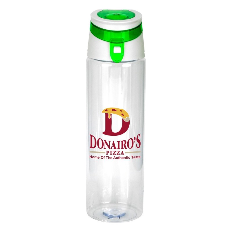 24 oz. water bottle with screw-on/flip top lid. Infuser compatible top, not included. Easy-carry pop-up handle. not recommended for dishwasher or microwave; BPA-Free. This item qualifies for Dim Weight; Please call or email for freight quote. Complies with FDA, Prop 65. 2.75″ Diameter x 10″ H