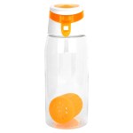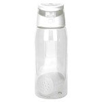 Introducing our eco-friendly 25 oz. refillable water bottle, crafted from recycled PET material. This innovative bottle features a floating infuser, perfect for adding your favorite fruits to infuse your water with delicious flavors. When filled with fruit, the infuser can hold 21-23 oz. of liquid. The bottle is designed with a convenient screw-on/flip-top lid and an easy carry pop-up handle for on-the-go hydration. Rest assured, this bottle is BPA-free for your peace of mind. Please note, this bottle is not recommended for use in the dishwasher or microwave. Stay hydrated and stylish with our sustainable water bottle option. Complies with Prop 65. 3″ D x 9″ H