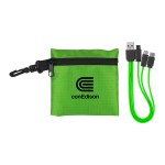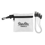 Introducing our sleek and stylish Trendy Tech Pouch crafted with durable Ripstop fabric. This innovative pouch comes with a vibrant 3-in-1 charging cable and a versatile multiple USB adaptor. Compatible with a wide range of devices including iOS, Micro USB, and Type C USB, this tech pouch is truly a must-have accessory. Rest assured, our product is patented, ensuring quality and reliability. Stay connected and organized in style with our Trendy Tech Pouch. Complies with Prop 65. 4″ L x 4″ H