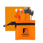 Introducing the stylish Tech Pouch crafted with durable ripstop fabric for a trendy look. Accompanied by matching travel earbuds for a seamless listening experience on the go. The package also includes a vibrant 5 x 5 recycled PET cleaning cloth, perfect for keeping your devices spotless. Additionally, enjoy the convenience of a colorful 3-in-1 charging cable with a multiple USB adaptor, all patented for quality and reliability. This versatile cable is compatible with IOS devices, Micro USB, and Type C USB, making it the ultimate accessory for all your charging needs. Experience the perfect blend of style and functionality with this innovative tech set. Complies with CE, Prop 65. 4″ L x 4″ H
