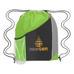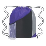 Made Of 210D Polyester. Large Front Pocket. Side Mesh Pocket. Drawstring Closure. Spot Clean/Air Dry. Complies with Prop 65. 13″ W x 17.75″ H