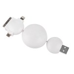 Trio Universal smart phone USB cell phone charger. 30″ retractable cord which eliminates tangles. Current is 1.5 amps at 5 volts. 4.5″ L x 1.625″ W