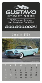 This 13-month calendar features different vintage cars each month. Use its Press-N-Stick mount to attach it to almost any surface and easily remove it at the end of the year. The FSC® label means that the materials used for this product come from well-managed FSC®-certified forests and other controlled sources. 3″ W x 3.875″ H