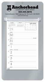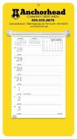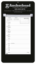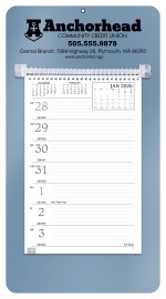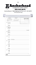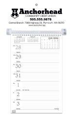 This handy model has a sturdy mount board with a hanging hole, along with ruled daily memo space. View a full week with insets of before, current and after months on every page. The SFI® label means that materials used for this product have been responsibly sourced. 13″ W x 7″ H