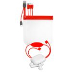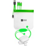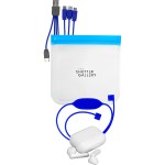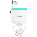 Introducing the stylish Storage Techie Pouch with zip closure for easy access. Includes White True Wireless Ear Bud Case with Bluetooth ear buds and silicone strap holder. Comes with a colorful 4-in-1 charging cable for IOS, Micro USB, and Type C USB devices. Say goodbye to tangled cords and lost ear buds – the Storage Techie Pouch has got you covered. Complies with CE, cUL, FCC, Prop 65, UL. 8″ L x 7.5″ H