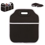Super-handy organizer neatly holds gear you put in your trunk, or take along. Strong 600D polyester main body. Sturdy plastic rimmed handles make moving this organizer into and out of your trunk simple. Large end pockets allow for additional storage of small items separate from larger items in the main compartments. This item folds flat when not needed to maximize trunk space. 24″ W x 14″ H x 12.5″ D