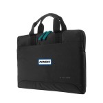 Super-slim bag for notebooks up to 14″ made of high-tech material with contrast-color details. Single internal compartment with neoprene corners to secure your laptop. The front side features a roomy external pocket. Double handles and detachable shoulder strap made with webbing. 14.57″ W x 10.63″ H x 1.38″ D