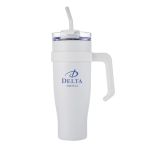 The Tugela Double Wall Stainless Steel Water Tumbler is designed for reliable everyday hydration with a sleek, modern profile. Both the inner layer and outer body shell are made from durable SS304 stainless steel, keeping drinks warm for 6–8 hours and cold for 10–12 hours while offering long-lasting quality. It features a secure snap-closure lid, a removable straw, and an integrated handle for comfortable carrying and easy sipping on the go.Product Size: 5.5″ W x 14.25″ x 4.375″ (With handle and straw). 5.5″ W x 14.25″ H x 4.375″ D