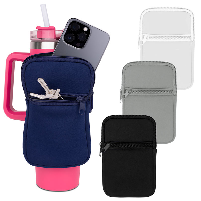 TumblerMate Two Zipper Pocket Pouch is made from durable neoprene, providing excellent insulation and protection for your tumbler. The straps are constructed from sturdy nylon for enhanced durability, complemented by a nylon zipper for smooth access. It features a secure POM plastic buckle, ensuring the pouch stays firmly in place. With two spacious zippered pockets, it offers convenient storage for small items like keys, cards, and other essentials. Fits bottles that have a capacity between 18o. 7″ W x 56″ W x 1″ D