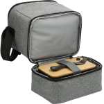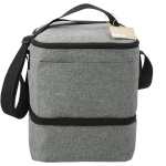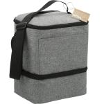 The Tundra Recycled Lunch Cooler provides ample storage for meals and snacks. It features a top-insulated zippered compartment, a bottom-insulated zippered compartment, and a front pocket ideal for storing small items like face masks or car keys. The interior of the Tundra Cooler is PEVA-lined while the exterior is made from durable, environmentally-responsible rPET material. 6.50″ D x 8.50″ W x 10.00″ H