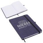 Our Twill Heathered Journal features a textured hardcover, 70GSM white ruled paper, 80 sheets (160 pages), and ribbon bookmark. Complies with Prop 65. 5″ L x 0.5″ W x 7″ H