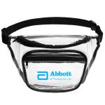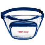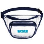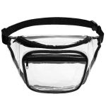 A must-have for all travel adventures, our large dual-pocket fanny pack is a handy companion to store necessities to go where you need them. Features: constructed of clear PVC, great for security checkpoints, one front pocket and a second larger rear pocket, adjustable strap with a plastic buckle, easily adjusts to fit waists up to 38 inches. Complies with Prop 65. 11″ W x 7″ H