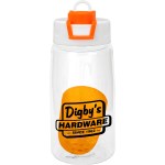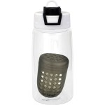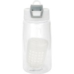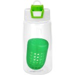Introducing our eco-friendly refillable water bottle with a unique floating infuser, perfect for adding a burst of flavor to your hydration routine. Crafted from recycled PET material, this sustainable bottle holds 14-16 oz. of your favorite fruit-infused water. The two-tone pop-up lid adds a touch of style and convenience to your sipping experience. Rest assured, this bottle is BPA-free for your safety. However, please note that this bottle is not recommended for use in the dishwasher or microwave. Elevate your hydration game with our environmentally conscious and stylish water bottle. Complies with FDA, Prop 65. 2.75″ D x 7.25″ H