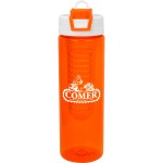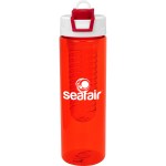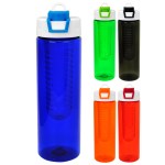 Stay hydrated in style with our 24 oz. vibrant, refillable water bottle. This sleek bottle features a two-tone pop-up lid with a convenient lanyard and a detachable fruit infuser, allowing you to add a burst of flavor to your water. With the infuser filled with fruit, the bottle holds 20-22 oz. of liquid. Made from BPA-free materials, this bottle is a safe and eco-friendly choice for staying hydrated on the go. Please note, this bottle is not recommended for use in the dishwasher or microwave, preserving its quality for the long haul. Complies with FDA, Prop 65. 2.75″ D x 9.25″ H