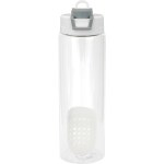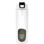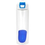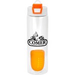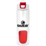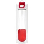 Stay hydrated in style with our 24 oz. refillable water bottle made from recycled materials, complete with a floating infuser for your favorite fruits. The two-tone pop-up lid adds a touch of elegance to your drink. Fill the infuser with fruit for a refreshing 20-22 oz. beverage. Rest assured, this bottle is BPA-free. Please note that this bottle is not suitable for the dishwasher or microwave. Enjoy your flavorful, eco-friendly hydration on the go. Complies with FDA, Prop 65. 2.75″ D x 9.25″ H