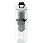 Introducing our eco-friendly 24 oz. water bottle with infuser, perfect for staying hydrated on the go. This bottle is crafted from recycled PET, making it both durable and sustainable. The infuser can hold 20-22 oz. of fruit-infused water, ensuring you stay refreshed and energized throughout the day. The two-tone pop-up lid adds a touch of style and convenience. Rest assured, this bottle is BPA-free, prioritizing your health and well-being. Please note, this bottle is not suitable for dishwasher or microwave use. Stay hydrated and stylish with our refillable water bottle! Complies with FDA, Prop 65. 2.75″ D x 9.25″ H