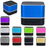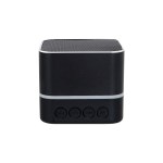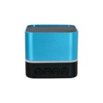 Enhance your audio experience with our sleek square metal Bluetooth speaker. Effortlessly connect to a variety of devices via Bluetooth for seamless music streaming. For an immersive stereo effect, pair two of these speakers together. The striking flashing blue light ring adds a touch of flair while pairing and playing music, while the solid blue light ring indicates when the speaker is charging or not in use.Included in the package are a USB charging cable and a rechargeable lithium battery, ensuring you can enjoy your favorite tunes on the go. Complies with Prop 65. 2.5″ D x 2.25″ H