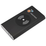 Aluminum and black ABS plastic/PC trim housing with Silicone charging pad Not compatible with cases featuring magnetic components, metal or finger ring UL2056 Certified LED lights indicate battery levels Micro USB Input: 5V/2A Power bank capacity: 10000 mAh Charges through most protective cases Connect a USB cable to the device port for optional wired charging Approx 5 6 hours recharge time NOTE: If your device is not compatible with wireless charging you may require external wireless charging. 5″ D x 2.75″ W x 0.625″ H