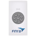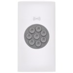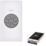 Wall charger not included 8 built-in suction cups on wireless charging surface hold your device Indicator lights Blue for battery levels; green for wireless charging Power bank capacity: 4000 mAh ABS white plastic shell with gray PC trim Charges through most protective cases Standard USB Output: DC 5V/2.1A Connect a USB cable to the device port for optional wired charging Approx power bank recharge time: 4-6 hours NOTE: If your device is not compatible with wireless charging you may require. 0.75″ D x 2.875″ W x 5.313″ H