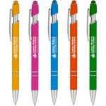 Brighten Up With the Ultima™ Brite Softex Gel-Glide Stylus Pen! Features our Softex™ soft touch rubber coating finish that provides a comfortable grip in bright cheery colors. Featuring your choice of mess free, smudge proof, blue or black Gel-Glide™ Ink. Double decorative bands and screen printed imprint. Matching color touchscreen stylus on the end of the pen. Your custom message printed directly on the soft touch rubberized pen barrel. Complies with Prop 65.