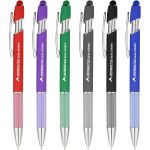 Our Best Selling Soft Touch Pen with Stylus and Gel-Glide™ Ink! Features our Softex™ soft touch rubber coating finish. Translucent silicone comfort grip for amazing writing comfort. Featuring your choice of mess free, smudge proof, blue or black Gel-Glide™ Ink. Matching color touchscreen stylus on the end of the pen. Your custom message printed directly on the soft touch rubberized pen barrel. Complies with Prop 65.