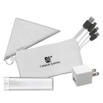 Introducing our versatile Stretchy Travel Pouch complete with a convenient keyring attachment. Stay charged on the go with our UL Certified Colorful Power Bank featuring a 2200 mAh charging capacity. Charge your devices safely and efficiently with our UL Listed Square USB Wall Charger, complete with a patented design. Keep your screens crystal clear with our Colorful 5 x 5 recycled PET cleaning cloth. Simplify your charging needs with our Colorful 3-in-1 charging cable, equipped with multiple USB adapters and a patented design. Compatible with IOS devices, Micro USB, and Type C USB, this cable is a must-have for anyone on the move. Complies with Prop 65. 6.75″ L x 3.25″ H