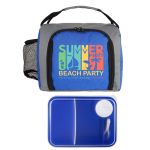 Introducing the Ridge Up Front Lunch Cooler, designed with a convenient front opening for easy access to your meals. This On The Go Lunch Container comes with a set of plastic utensils for added convenience. Stay organized and stylish while keeping your food fresh and ready to enjoy wherever your day takes you. Complies with FDA, Prop 65. 9″ L x 8″ H x 7″ W