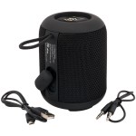Includes micro USB charging cable, AUX cable, and user manual. Approx 2-3 hours charging time Built-in mic for hands-free calls Indoor/outdoor waterproof 10 watt Bluetooth speaker IPX7 rating – waterproof Connect via Bluetooth 5.0 technology or AUX line-in cable TWS capability allows to pair 2 speakers with same device Easy-carrying elastic loop Approx 15 hours of playtime Certifications: BQB, MSDS, UN38.3, FCC Features a TF card slot. 3.25″ D x 3.25″ W x 4.375″ H