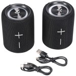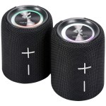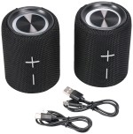 LED light illuminates when powered on Includes type-C charging cable and instruction manual Charging time: 2 Hours Wireless speaker that separates into two smaller magnetic units Reconnects magnetically for enhanced sound Playtime : 3-8 Hours. 3″ D x 3″ W x 8″ H