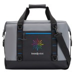Collapsible size measures 18H x 21W Durable, collapsible 20 can cooler is designed to transition easily from a cube shape to flat for economical shipping and storage Leak-resistant heat-sealed liner Exterior includes 2 side buckles, simply unfasten and flatten for convenient storage Hook and loop padded closure on handles Adjustable and removable padded shoulder strap Rugged waterproof matte 55C PVC Mesh Tarpaulin exterior, 38C PVC lining, and an 840D pocket Featuring thick 10mm foam. 8.5″ D x 17.5″ W x 11.5″ H