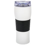 18-8 dual wall Stainless Steel with Copper-lined, deep draw liner Patented Vacuum insulation provides optimum heat retention at least 8X longer Powder-coated finish Lead-free vacuum seal Featuring our spill-proof flip-top AS plastic lid featuring unique Tritan snap-locking closure Non-slip textured Silicone hand grip 1-year limited warranty. 3.25″ D x 3.25″ W x 8.75″ H