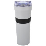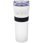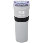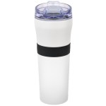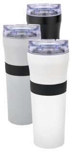 Non-slip textured Silicone hand grip 1-year limited warranty Lead-free vacuum seal Patented Powder-coated finish Featuring our spill-proof flip-top AS plastic lid featuring unique Tritan snap-locking closure 18-8 dual wall Stainless Steel with Copper-lined, deep draw liner Vacuum insulation provides optimum heat retention at least 8X longer. 3.25″ D x 3.25″ W x 8.75″ H