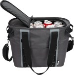 1-Year Limited Warranty Adjustable and removable padded shoulder strap Features front slash pocket, front and back side daisy chain, D rings and an elastic secured Stainless Steel bottle opener Made from 1680D Polyester Durable top-loading 24 can cooler featuring extra thick foam insulation Leak-resistant heat-sealed liner Hinge-style zippered top allows for quick accessibility. 7″ D x 15″ W x 13″ H