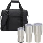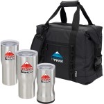 SL233SS 3-in-1, 20 oz SL234SS and 30 oz SL235SS Patented Features 3 drinkware styles from our best selling Urban Peak Drinkware Collection: 3-in-1 Insulator (SL233SS), 20 oz Vacuum Tumbler (SL234SS) and 30 oz Vacuum Tumbler (SL235SS) Choose from three bag colors 3 drinkware styles packaged inside of the Urban Peak Waterproof 24 Can Cooler Bag (CB151) 1-year limited warranty Cooler bag constructed of rugged waterproof 500D Tarpaulin exterior Drinkware constructed of 18-8 Stainless Steel. 8″ D x 14″ W x 12.5″ H