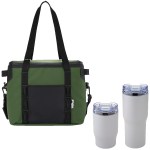 Features the Urban Peak 20 oz (SL234PR) and 3-in-1 Tumbler (SL238PR) packaged inside the Urban Peak Waterproof 12 Can Hinge Cooler (CB161) 1-year limited warranty SL238PR 3-in-1 and 20 oz SL234PR Patented Drinkware constructed of Stainless Steel, double wall copper-lined vacuum insulation with powder-coat finish Cooler bag constructed of rugged waterproof 55C PVC Mesh Tarpaulin. 6.75″ D x 12″ W x 9.5″ H
