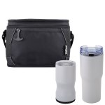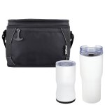 Drinkware constructed of Stainless Steel, double wall copper-lined vacuum insulation with powder-coat finish Features the Urban Peak 20 oz (SL234PR) and 3-in-1 Trail Insulator (SL233PR) packaged inside the Urban Peak Reserve 6 Can Cooler (CB165) 1-year limited warranty Cooler bag constructed of rugged waterproof 500D Tarpaulin SL233PR 3-in-1 and 20 oz SL234PR Patented. 7″ D x 11″ W x 7″ H
