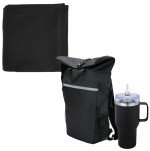 Backpack cooler made of 55C PVC Mesh Tarpaulin, 38C PVC lining, 210D/PU insulation, and 300D/PU pocket with a leak-resistant heat-sealed liner Features the Urban Peak 24 Can Roll Top Backpack Cooler (CB172), Promo Fleece Blanket (PROMOFLSL), and 30 oz Urban Peak Apex Ridge Vacuum Travel Mug (SL173PR) Promo fleece blanket is made of 100% polyester, available in 5 colors 1-year limited warranty on all Urban Peak products Travel mug features a push-on AS plastic flip top with Tritan snap-locking. 6″ D x 16″ W x 21″ H