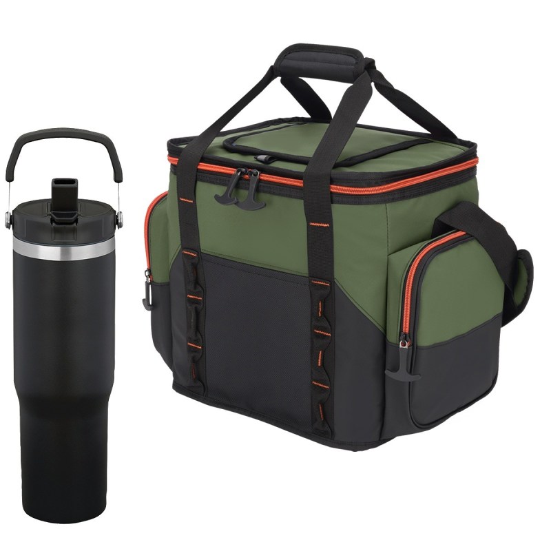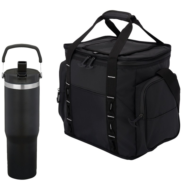 Features the 28 oz Urban PeakĀ® Pinnacle Flip Straw Tumbler (SL179PR) and Urban PeakĀ® Waterproof Ridgetop 24 Can Cooler (CB180) Tumbler includes copper-lined vacuum insulation, maintaining optimal drinking temperatures for up to 10X longer, and two detachable internal PE straws Cooler is a top-loading 24 can waterproof cooler made from 0.55 Tarpaulin PVC, 0.38mm Tarpaulin PVC, 10mm PE foam, with an 840D/PVC pocket and a padded shoulder strap 1-year limited warranty. 9.5″ D x 12″ W x 11″ H