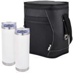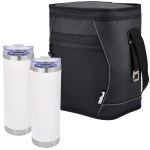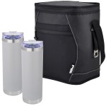 SL164PR Patent pending Drinkware constructed of Stainless Steel, dual wall copper-lined vacuum insulation with powder-coat finish 1-year limited warranty Cooler bag constructed of 500D Tarpaulin, matte 55C PVC, 38c PVC lining, 10mm foam with a leak-resistant, heat-sealed liner Features 2 pieces of the 16 oz Urban Peak Keystone Trail Vacuum Tumbler (SL164PR), packaged inside the Urban Peak Reserve 12 Can Cooler (CB166). 7″ D x 10″ W x 12″ H