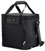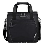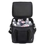 1-year limited warranty Hook and loop padded closure on handles Leak-resistant, heat-sealed liner Features a main compartment, front zippered pocket, water resistant zippers with easy grip zipper pulls and a strap-secured Stainless Steel bottle opener Adjustable and removable padded shoulder strap Constructed from 500D Tarpaulin, matte 55C PVC, 38c PVC lining, 10mm foam with 840D pocket Rugged and waterproof top-loading 24 can cooler featuring thick foam insulation. 9″ D x 12″ W x 12″ H