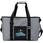 Made from 55C PVC mesh Tarpaulin, PVC lining, 10mm Foam with 840D pocket Hook and loop closure on padded handles Features durable zipper, bold color stitch trim, front slash pocket, front side daisy chains, D rings, side handles and an elastic-secured Stainless Steel bottle opener Leak-resistant heat-sealed liner Hinge-style zippered top allows for quick accessibility 1-Year Limited Warranty Durable top-loading 48 can waterproof cooler featuring extra thick foam insulation Adjustable and. 9″ D x 19″ W x 13″ H