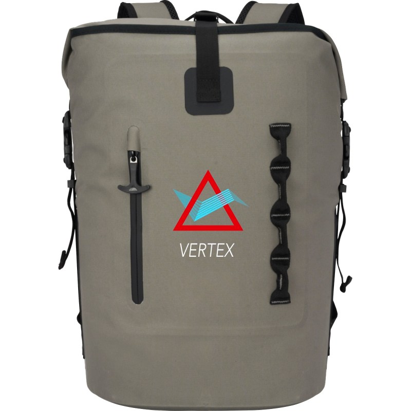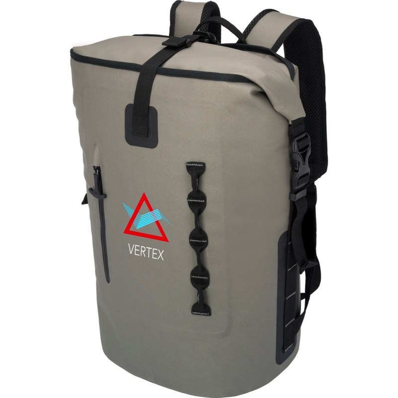 1-year limited warranty Features water resistant zippers, glove friendly zipper pull, front zippered pocket, front daisy chain, and adjustable padded shoulder straps Roll down top with top and side compression straps and buckle closures Durable top-loading 26 can waterproof backpack cooler featuring 100% recycled Polyester and extra thick foam insulation Made from waterproof 100% RPET 600D Polyester/TPU,10mm PE foam, and 0.38mm Tarpaulin/PVC Leak-resistant heat-sealed liner and waterproof taped. 9″ D x 15″ W x 20″ H