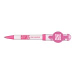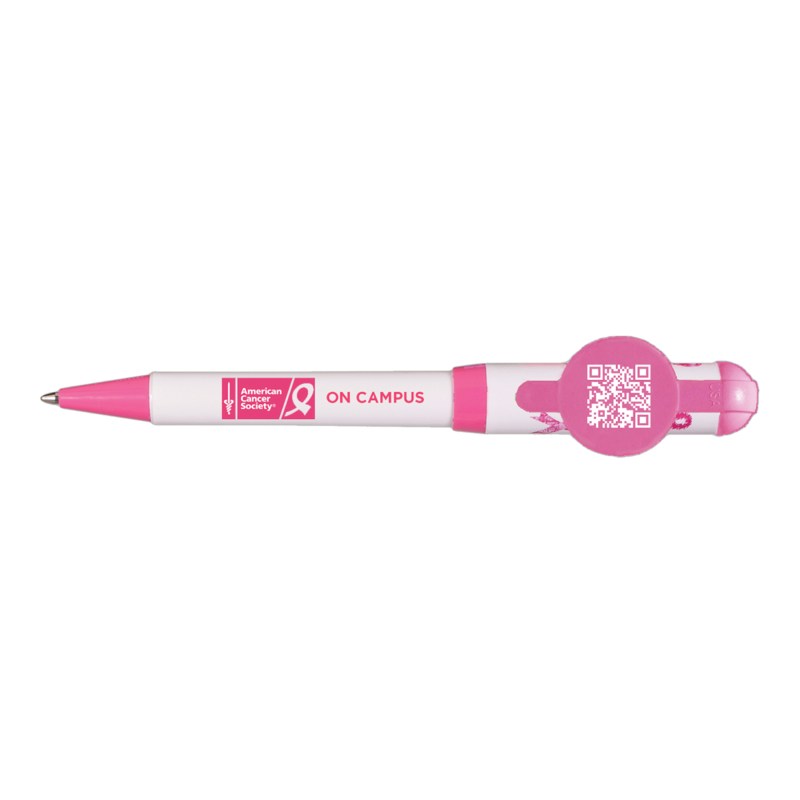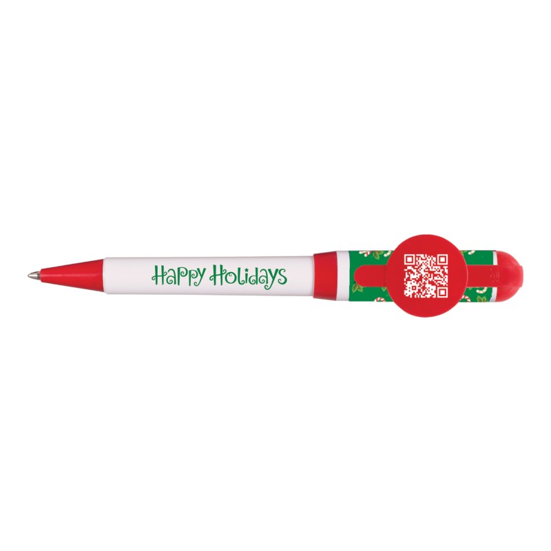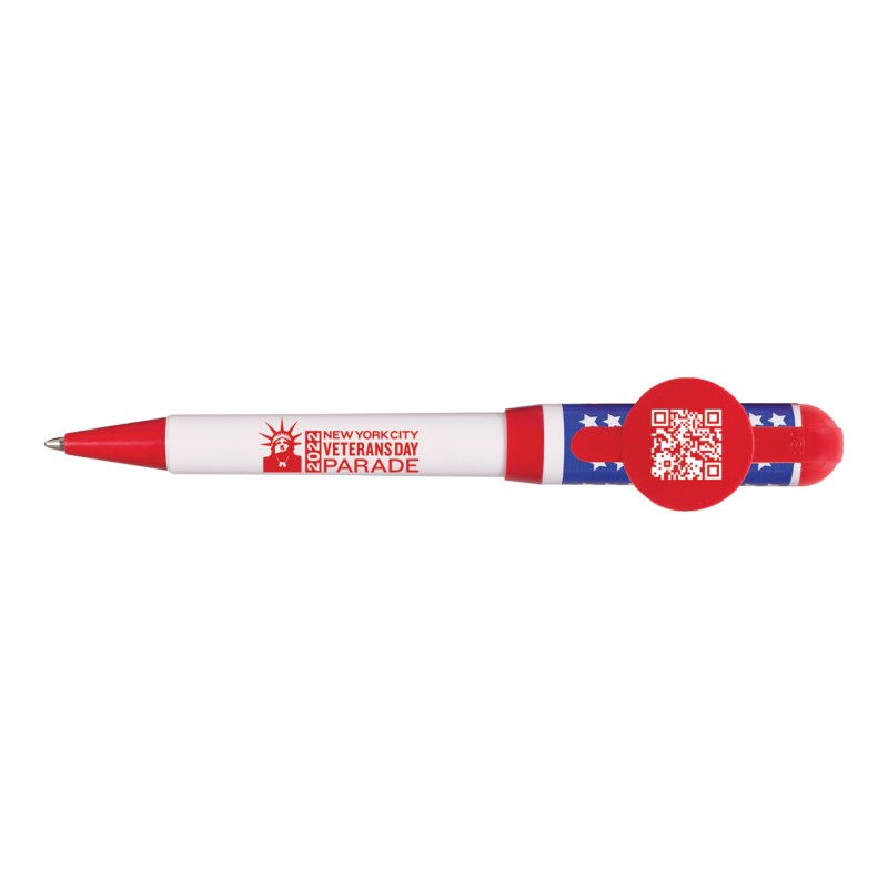 Billboard jumbo twist pen. Pre-decorated cap designs – Patriotic Stars, Pink Ribbons or Holiday Candy Canes. Price includes QR Code clip imprint, decorated cap, and single color silk screen barrel imprint. 5.5″ H