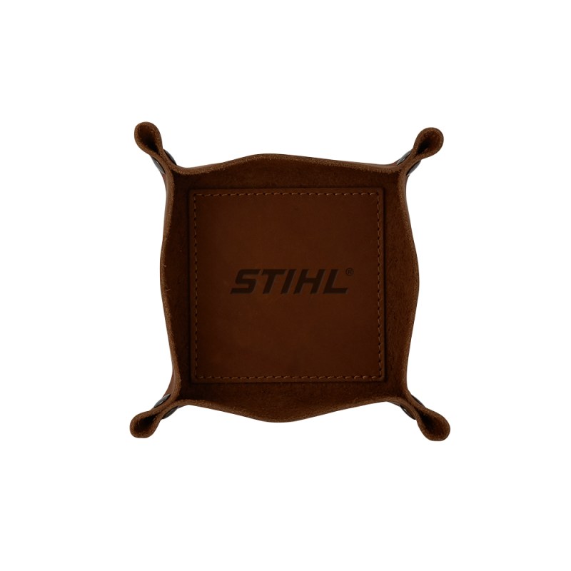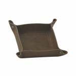 Valet 6″ debossed leather valet tray with antique nickel snap closures. Choose from a variety of domestic, USA Made, leather colors and customize to match your company logo to create something truly unique. Colors and distress marks will vary – Variations found in natural leather. Complies with Prop 65. 7.13″ W x 7.13″ H