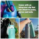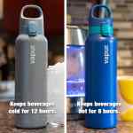 Vapur’s Chill bottle in Admiral Blue is equipped with an easy to use lid lock for zero leaks or spills and an EZ Flow cap with flexible spout positioning. Double wall insulation keeps beverages cold for 12 hours and beverages hot for 8 hours. Comes with a convenient clip, making it easy to attach to your purse, belt loop or pack. Dishwasher Safe with removable spout for optimum cleaning. Includes a filter basket that can fit charcoal filters for clean, great tasting water. Laser engraved. Boxed. Also available in Dusk Purple (#10326), & Seaside Blue (#10327), Sunbeam Yellow (#10328). 11″ H x 3″ W x 3″ L