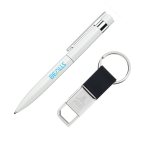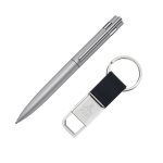 P264 & KC207 keyring gift set. Packaged in a black gift box with foam inserts. (Chrome engraving available on pen only).