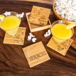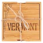 This State Puzzle Coaster Set with Case offers a natural solution for protecting tabletop. These sturdy coasters are crafted from organically-grown Moso® bamboo, an environmentally-friendly material solution that quickly re-grows once harvested. Bamboo is both lightweight & durable a perfect choice for coasters! The coaster set includes a handsome case to store coasters neatly when not in use. The coasters are easy to care for as well: simply wipe them with a damp cloth to clean. Complies with Prop 65. 4″ W x 4″ H