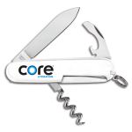 3.25″ long handle. This compact Swiss Army tool Features a large blade and a combination tool that consists of a bottle opener, can opener, screwdriver, wire stripper. corkscrew, tweezers and toothpick. The ultimate tool for any waiter, food service employee or wine enthusiast. Pad Print or D3 Digital Print. Boxed. Complies with Prop 65. 3 1/4″ L