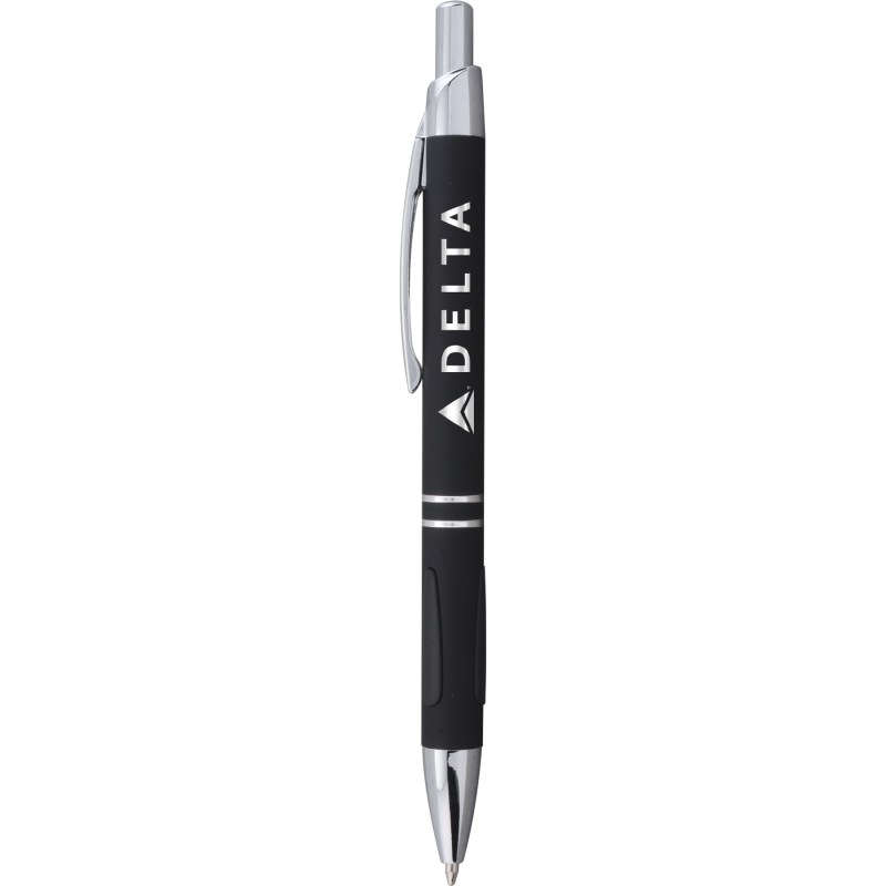 This Vienna Executive Pen upgrade features the latest in writing enjoyment. A rubberized finish for added comfort no matter where you grip, teardrop grippers, & smooth writing black ink add to the truly tactile writing experience. The engraved silver imprint & shining trim contrast boldly with matte colored finish. An economical price & anti-fraud ink make this a perfect pen for many fields. Complies with Prop 65. 5.75″ L x 0.4″ Diameter